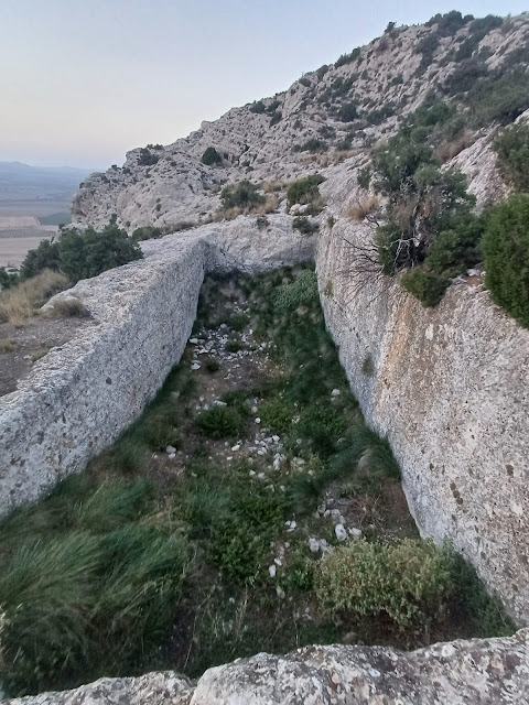 Viajar por la península por motivos laborales tiene su ventaja. Cerca de Alpera, Albacete, la Sierra del Mugrón destaca al sur, con los contrafuertes de la cima principal de la sierra mirando hacia la autovía entre Albacete y Valencia. Al norte la sierra presenta varios picos con cortados en mitad de fincas privadas, sobresaliendo el Puntal del Mugrón (1067m) y el poblado ibero que existe sobre su antecima. Además, si estás viviendo bonitos momentos volviendo al arte del trail running, toquemos madera, trotar al atardecer entre Albacete y Valencia me será una experiencia muy chula.
